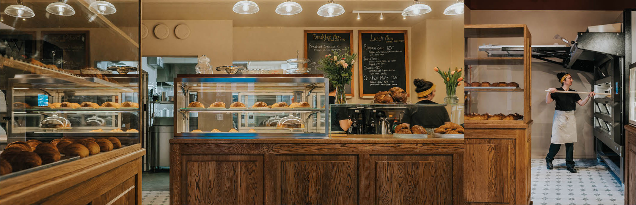 Boulangeri hade en vision om att skapa ett autentiskt franskt bageri där allt bakas på plats, med både frukost- och lunchmeny. Målet var att återskapa känslan av ett klassiskt franskt bageri. För att stödja denna vision levererade vi en specialbyggd kassadisk i solid ek, samt en exponeringsmöbel och en kylmonter integrerad i disken. Kylmontern infälldes i kassadiskens toppskiva för att bibehålla ett enhetligt och stilrent utseende. Vi installerade även ett kylrum med rostfri förångare, anpassat för surdegens syra, för att förhindra rost och korrosion.