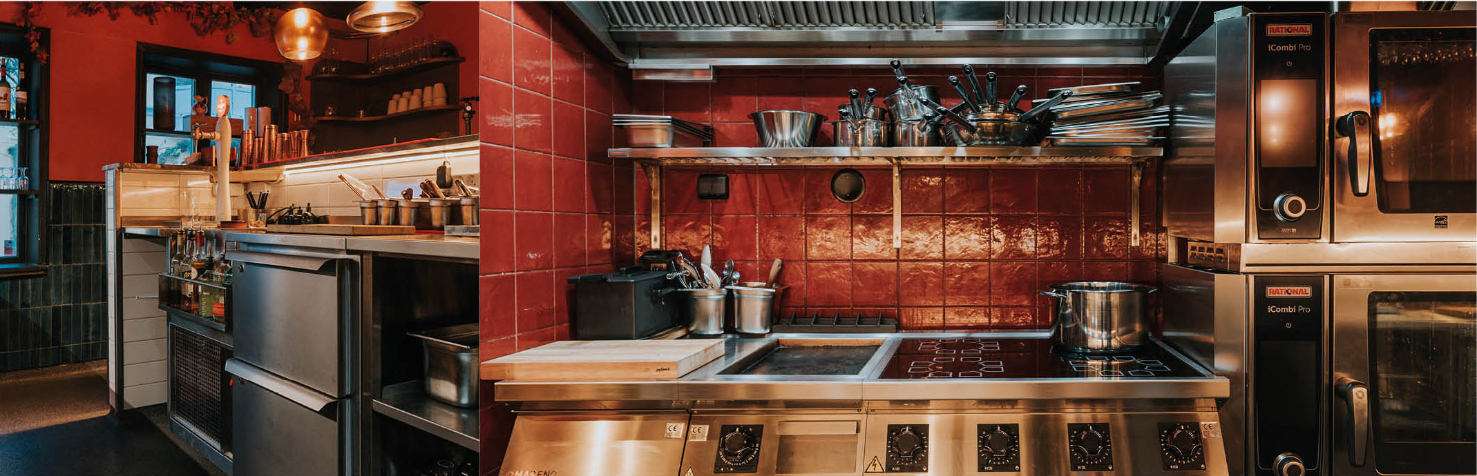 Mas, systerkrogen till Ved, har som vision att skapa en autentisk spansk tapasrestaurang. Zoran och Hamid fann snabbt sin plats i lokalen, men stötte på utmaningar på grund av de begränsade ytorna i det äldre huset. Ett av de största hindren var att skapa tillräckligt med sittplatser samtidigt som ett funktionellt à la carte-kök behövde byggas på bottenvåningen för att undvika onödigt spring i trapporna. Förberedelsekök och kylförvaring placerades på andra plan för att optimera arbetsflödet, medan förvaring och kylförvaring även fick placeras vid uteserveringen. Genom noggrant planerade åtgärder skapade vi ett effektivt à la carte-kök med direktanslutning till baren, vilket gör att köket kan leverera trots de utrymmesmässiga begränsningarna. När terrassen är uppgraderad till sommaren kommer restaurangen att nå sin fulla potential. Vår nära dialog med kunden och detaljerad planering har varit avgörande för att hitta en balans mellan effektivitet, funktion och en positiv gästupplevelse.