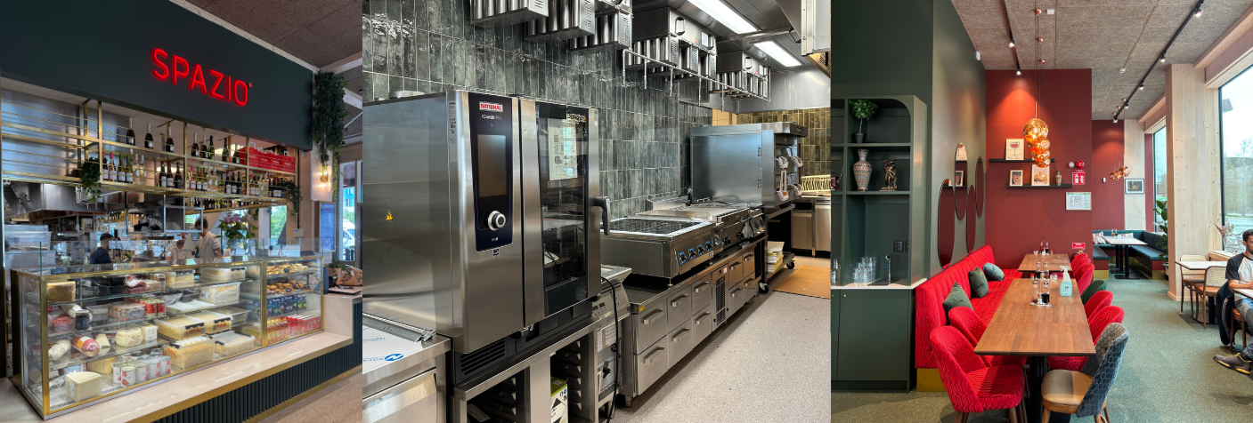 När Spazio kom till oss fanns visionen om expansion och viljan att ta nästa steg. Tillsammans har vi varit med och utvecklat konceptet från en renodlad snabbmatsenhet till ett fullskaligt, restauranganpassat koncept med tydlig identitet och stark förankring i platsen. Vårt uppdrag har omfattat konceptutveckling, framtagande av verksamhetsberättelse samt produktion av både planlösningar och 3D-visualiseringar. En central del i arbetet var utformningen av det öppna köket och baren, en lösning som både skapar transparens och stärker gästupplevelsen.