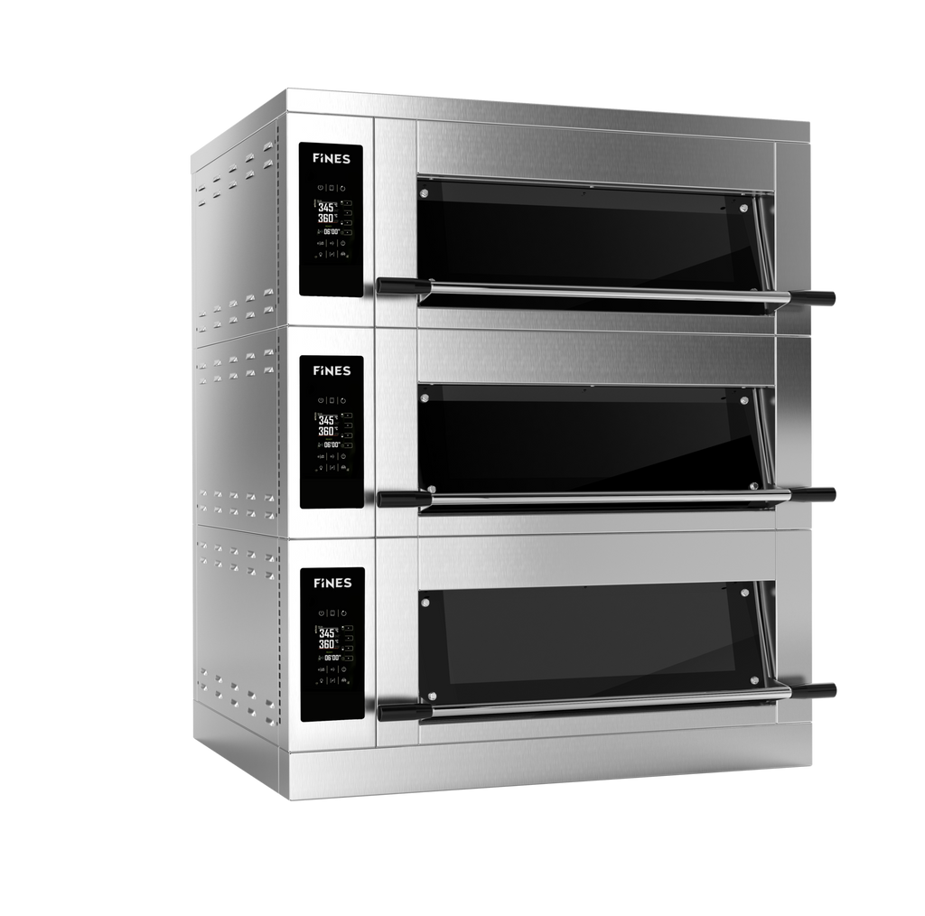 Fines FIN‑DEKO deckugnar är proffsugnar byggda för dig som vill ha klassisk, kontrollerad bakning i varje våning. Varje “deck” fungerar som en egen ugnskammare med egen temperaturstyrning och ångfunktion, vilket gör det enkelt att baka olika produkter samtidigt utan kompromisser.