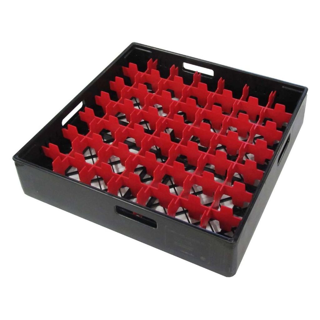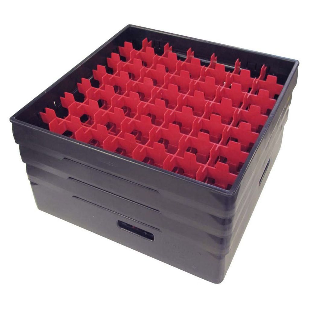 Diskkorg med fack avsedd för diskning, lagring och transport av glas. Facken skyddar glasen under hela hanteringsprocessen och minskar risken för krosskador och slitage. Fackens rillade konstruktion förhindrar dessutom vattenfläckar.