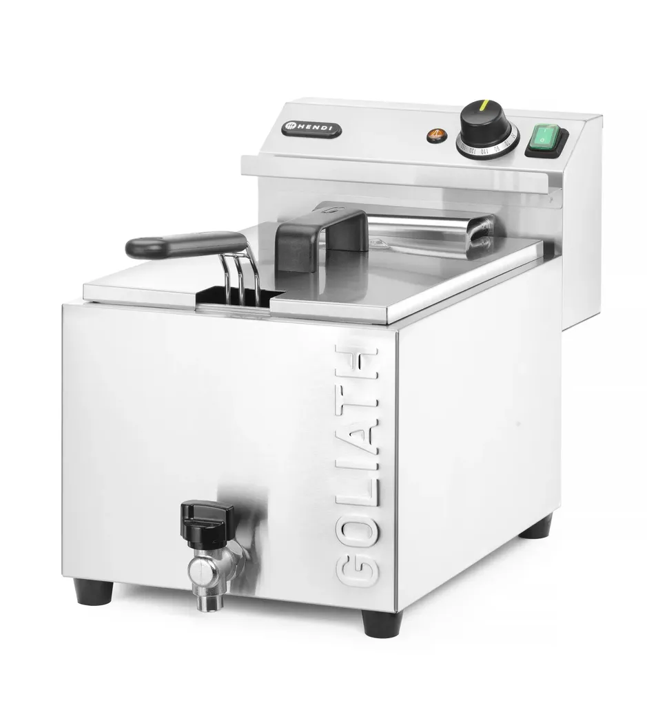 Hendi Goliath XL är en kraftfull fritös med 10 liter kapacitet och en effekt på hela 10 200 W. Tack vare avtappningskranen tömmer du oljan snabbt och smidigt – perfekt för hektiska storkök och catering.