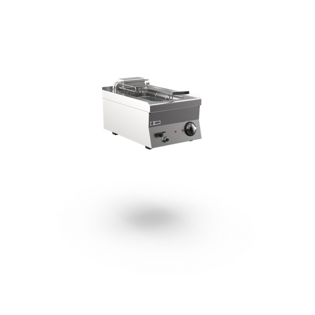 Wery elektrisk fritös FQE64R är utrustad med en 10 liters bassäng med element på 6 kW. Enheten är termostatstyrd, temperaturen kan regleras mellan 100–180°C. Elementet kan fällas upp ur bassängen vilket förenklar rengöring. Enheten levereras med helkorg och lock.