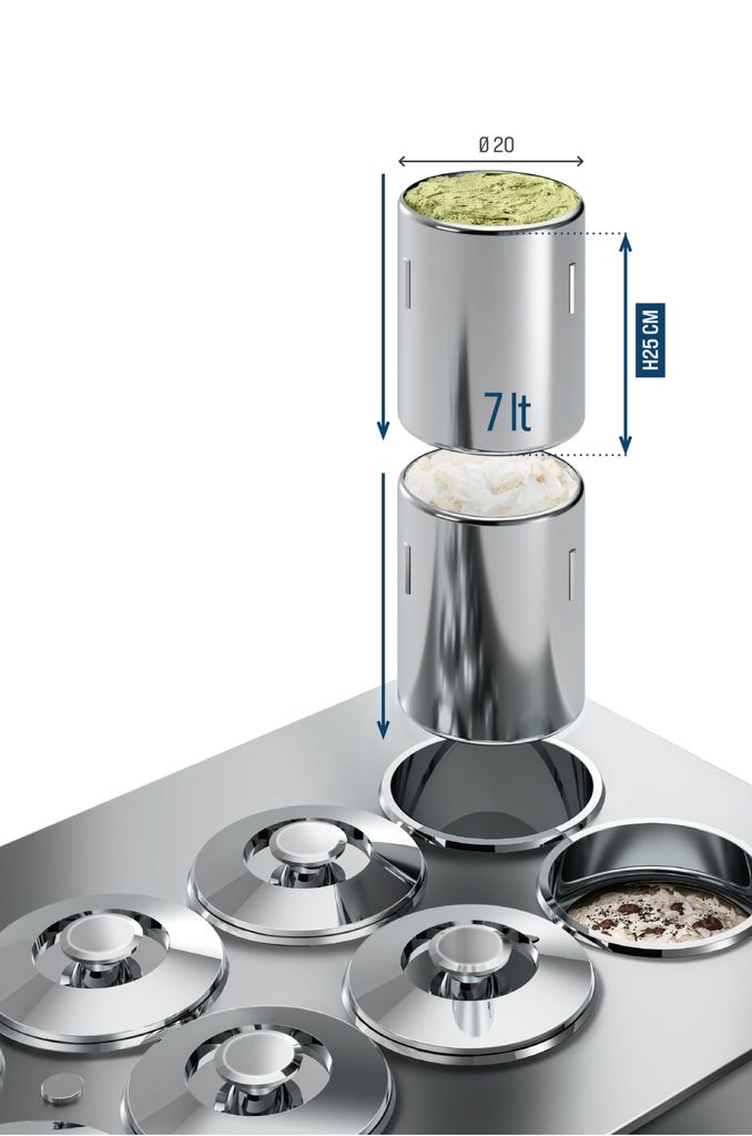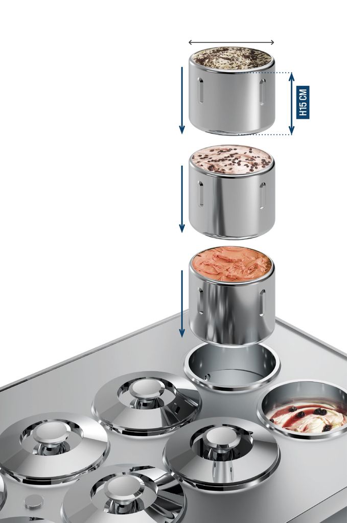 BRX Gelato Carapina Ø 20 cm är en klassisk karapin i rostfritt stål med anti-rotation som sitter stadigt i pozzetti och displaybänkar. Den här standardstorleken är idealisk för gelato-produkter och ger dig bra balans mellan volym och hanterbarhet för daglig servering och rotation. Den passar perfekt i traditionella pozzetti-konfigurationer och gör både spatulering och påfyllning smidigare för dig i arbete.