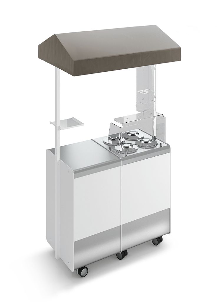 På kundsidan finns ett plexiglasskydd med hål för struthållare, vilket ger en praktisk och hygienisk serveringsyta.