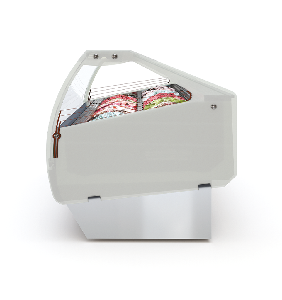 Det isolerande höljet i polyuretan och de uppvärmda, härdade glasen håller rätt temperatur och förhindrar kondens. Resultatet? Glass som alltid ser lika frestande ut – oavsett väder.