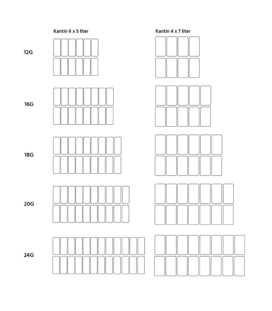 | Kantintyp Standard (smal), Gelato (bred), Pozzetti (rund) | Standard: 360 × 165 × 120 mm – 5,0 L Gelato: 360 × 250 × 80 mm – 5,0 L |