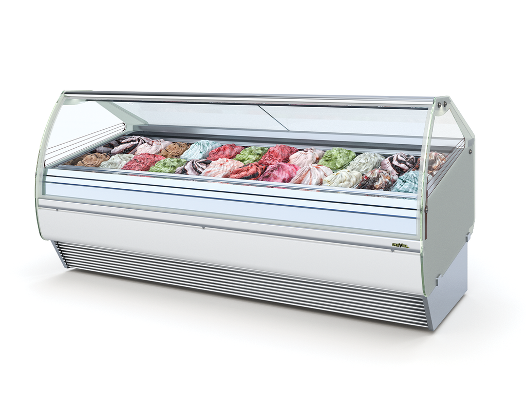 Vill du visa upp din glass med stil? Sevel MX är glassdisken för dig som gillar design lika mycket som funktion. Det eleganta, ramlösa glaset drar blickarna till sig, medan smart kylteknik och dubbla system håller glassen perfekt tempererad – även under hetaste sommardagen. Perfekt för caféer, gelaterior och butiker som vill sticka ut med både smak och stil.