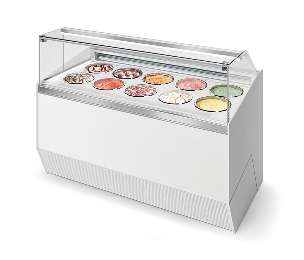 Det unika kylsystemet med cirkulerande glykol i botten och lätt ventilation på ytan håller temperaturen jämn, även med öppen servering. Gelaton behåller sin rätta konsistens och glansen i ytan, utan att smälta eller frysa ihop.