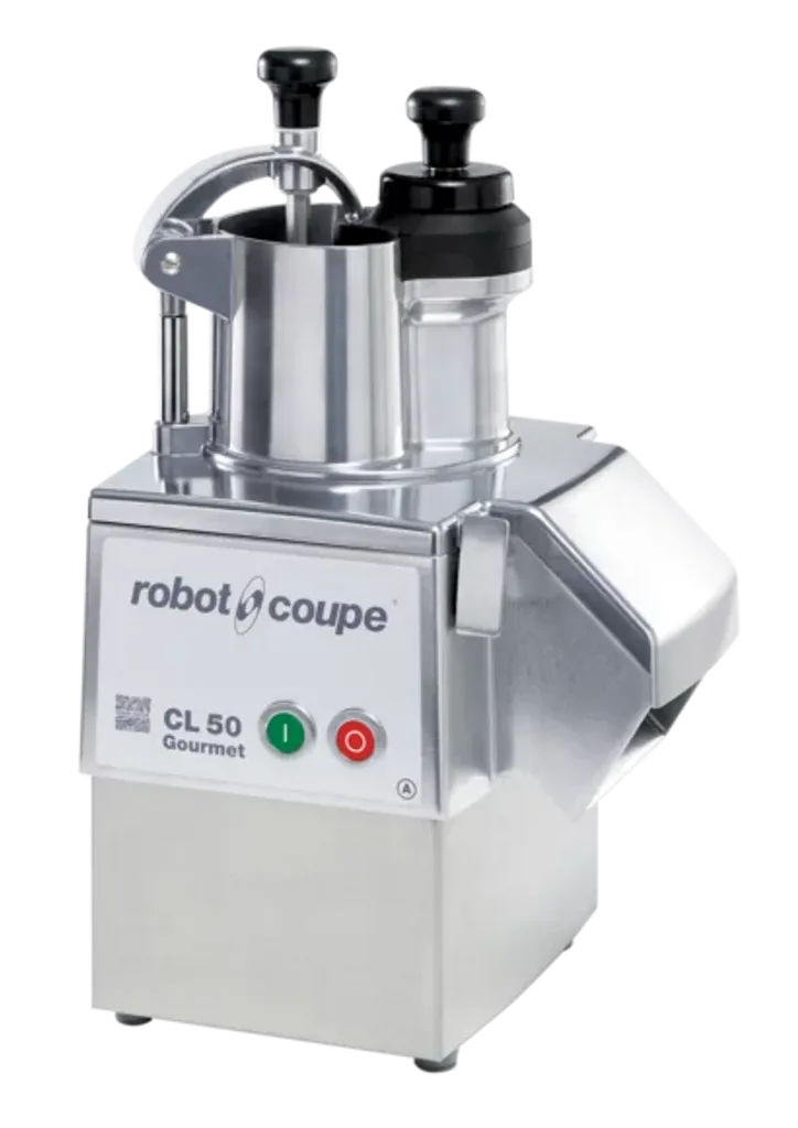 Robot Coupe CL 50 Gourmet är en bänkmonterad grönsaksskärare för professionellt bruk — men med fokus på de finare snitten såsom brunoise, gaufrett samt tabbouleh . Med över 50 olika tillbehör för skivning, strimling, tärning, räffling och pommes frites kan den hantera allt från bladpersilja, potatis och kål till tomat, paprika och lök — snabbt, effektivt och med hög kvalitet och precission. Den sparar timmar av manuellt arbete varje dag och levererar jämna, professionella snitt i varje batch.