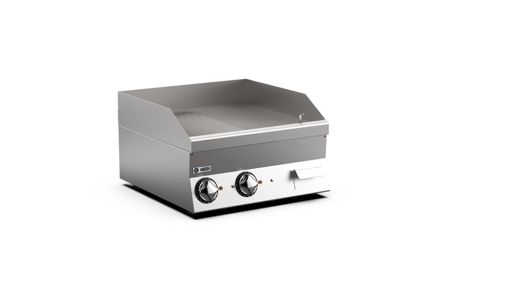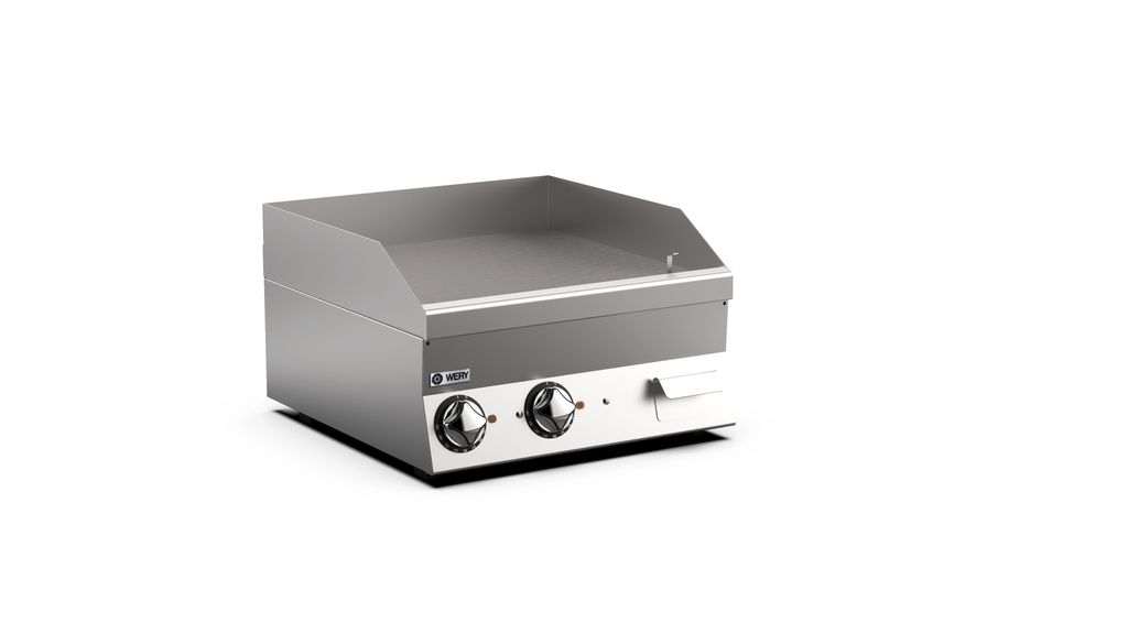 Wery elektrisk kromstekhäll FTE66LC har 7,8 kW effekt. Levereras som standard med slät stekyta, men finns även tillgänglig med 1/2-räfflad stekyta FTE66MC. Stekytan är hårdkromad och spegelpolerad. Enheten har fast, högt stänkskydd på tre sidor och uppsamlingskärl för fett. Temperaturen regleras i två zoner med termostat mellan 50–300ºC.