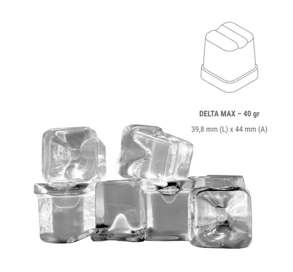 ITV Delta Max kombinerar hög kapacitet med kompakt design och erbjuder professionell isproduktion för verksamheter där både kvalitet och effektivitet är avgörande. Maskinen producerar eleganta 40-grams gourmet-iskuber – täta, klara och långsamt smältande – perfekta för att lyfta presentationen i drycker och cocktails.