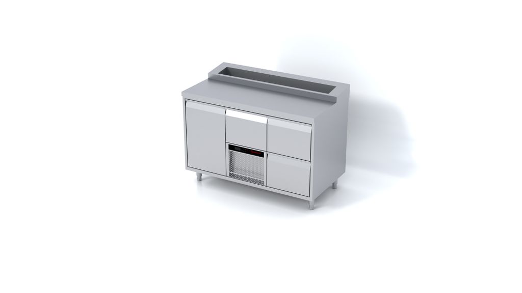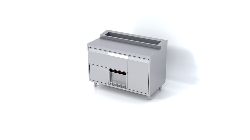 Ovanpå arbetsytan finns en integrerad och GN-anpassad kylränna, perfekt för sallader, toppingar, pålägg och alla ingredienser som måste vara både kylda och lättåtkomliga. Den rymliga arbetsytan kombineras med förvaring som kan konfigureras med dörrar, lådor eller en kombination av båda. Lådorna är 110 % utdragbara, klarar 50 kg och har separata kylzoner som gör att öppning av en låda inte påverkar temperaturen i de andra.