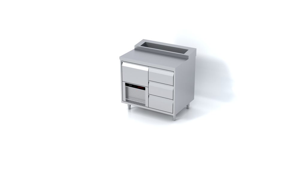 Ovanpå arbetsytan finns en integrerad och GN-anpassad kylränna, perfekt för sallader, toppingar, pålägg och alla ingredienser som måste vara både kylda och lättåtkomliga. Den rymliga arbetsytan kombineras med förvaring som kan konfigureras med dörrar, lådor eller en kombination av båda. Lådorna är 110 % utdragbara, klarar 50 kg och har separata kylzoner som gör att öppning av en låda inte påverkar temperaturen i de andra.