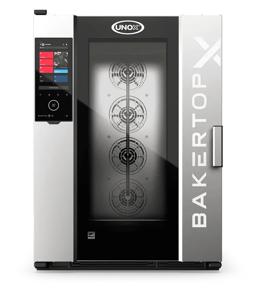 BAKERTOP-X™ är utrustad med UNOX banbrytande Digital.ID™-operativsystem, ett intelligent styrsystem som lär sig av användaren och anpassar ugnens beteende därefter. Den stora högupplösta touchdisplayen ger en responsiv och intuitiv användarupplevelse, samtidigt som röststyrning via HEY.Unox möjliggör handsfree-arbete i köket.