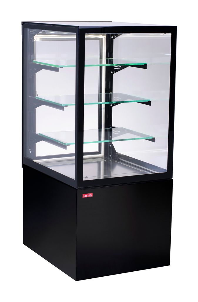 Den kan beställas i okylt utförande, som neutral monter, eller anpassas för choklad med hjälp av en hygrostat som reglerar luftfuktigheten. För extra driftsäkerhet kan CUBE utrustas med hetgasavfrostning, vilket ger en snabb och skonsam avfrostning utan att temperaturen stiger i montern – en trygg lösning för känsliga produkter. Särskilt viktigt för dig som exponerar tårtor, mousser eller andra kylda desserter, och en funktion som bidrar till stabil drift och längre livslängd.