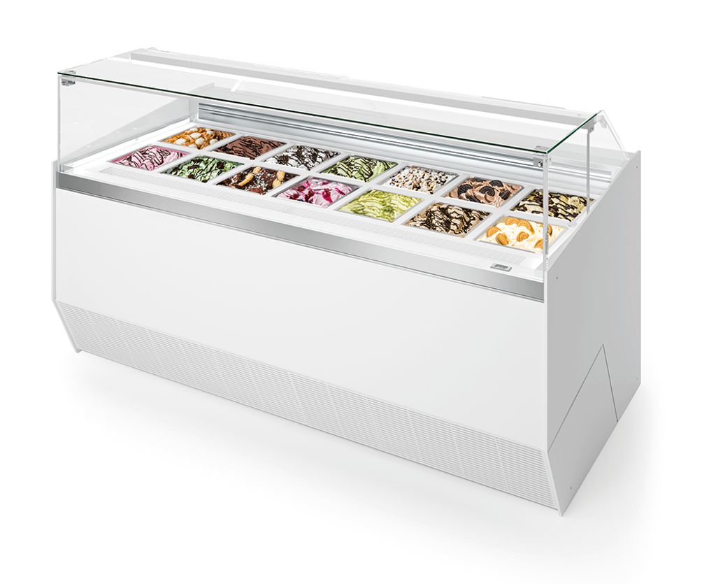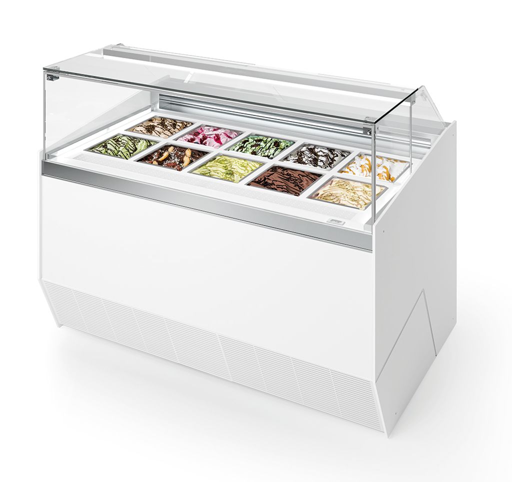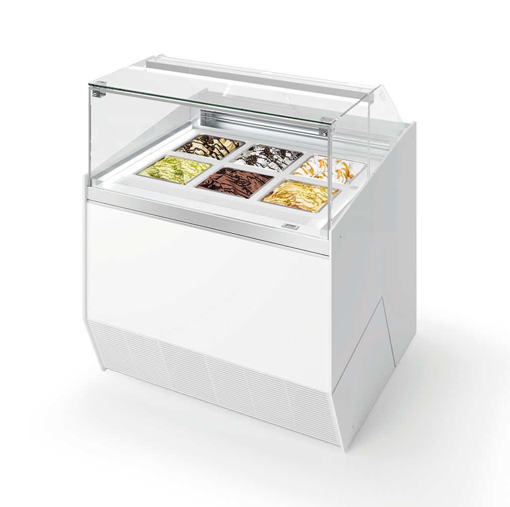 Det unika kylsystemet med cirkulerande glykol i botten och lätt ventilation på ytan håller temperaturen jämn, även med öppen servering. Gelaton behåller sin rätta konsistens och glansen i ytan, utan att smälta eller frysa ihop.