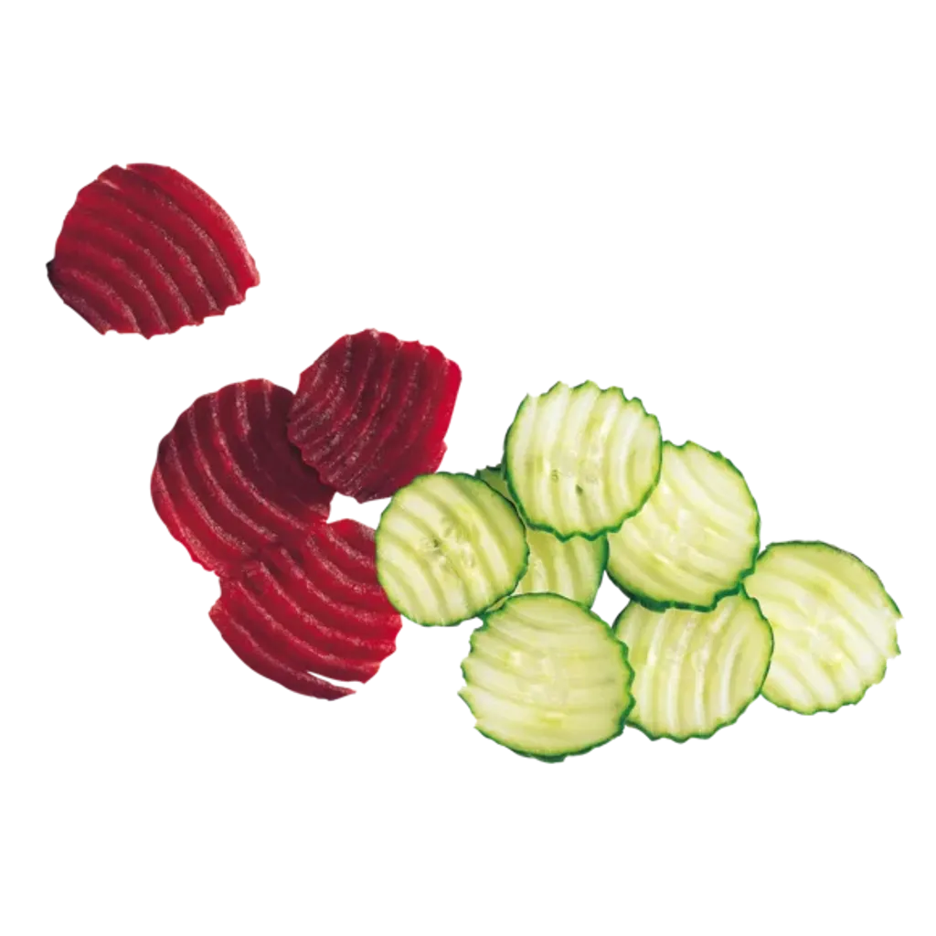 Robot Coupe räffelskivare gör det smidigt att skiva grönsaker, sallad, rotfrukter eller andra råvaror snabbt och räfflande snyggt. Den ger fina, jämna skivor med minimal ansträngning.