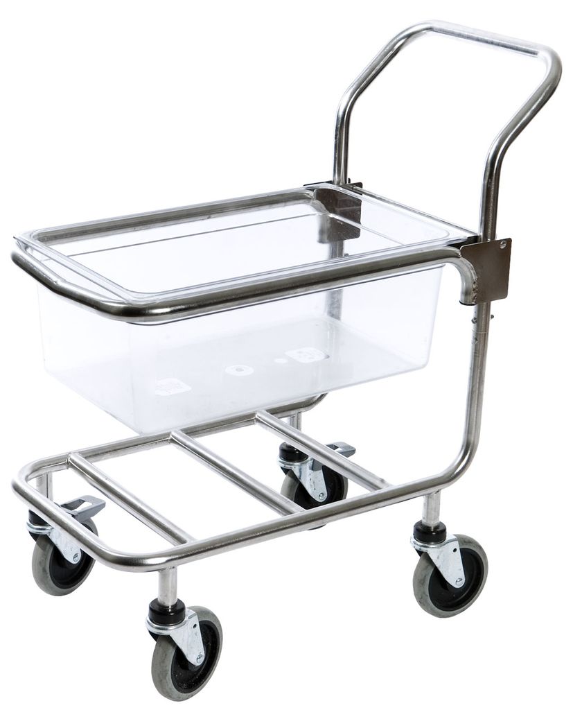 Hällde Kantinvagn gör det enkelt att hantera och transportera färdigskurna råvaror eller ingredienser i köket. Den är tillverkad i rostfritt stål, har hjul (varav två är låsbara) för smidig förflyttning och en regulerbar kantin — perfekt när du vill samla upp och flytta grönsaker, frukt, potatis eller annat efter skärning. Kantinvagnen passar särskilt bra i storkök, restaurang eller catering där effektivitet och hygien är viktigt.
