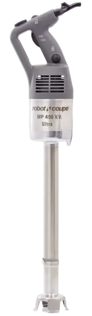 Robot Coupe MP 450 Ultra V.V. är stavmixern som mixar med extra kraft, variabel hastighet och proffsegenskaper i Ultra-klass är den byggd för kök där det händer grejer hela tiden: storkök, restaurang, catering eller caféer med högt tempo. Den tar sig an allt från varma soppor och såser till puréer, röror och dressingar – med precision, styrka och stil. Den är lite som den där kollegan som alltid levererar: snabb, pålitlig och svår att leva utan.