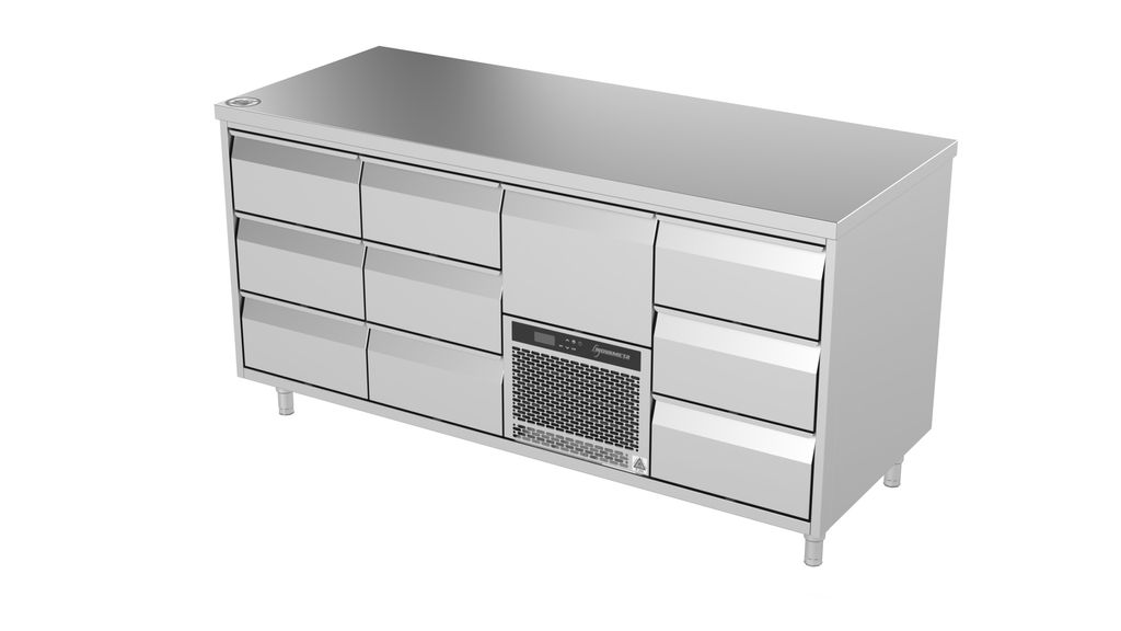 Kompakt och energieffektiv kylbänk i rostfritt AISI 304-stål, utvecklad för professionella kök med höga krav på hygien och driftsäkerhet. Den fläktkylda konstruktionen ger stabil temperatur mellan –5 … +8 °C, och automatisk avfrostning gör rengöringen enkel. GN-anpassad design med plats för GN 1/1–200 ovanför aggregatet. Finns med dörrar eller lådor för flexibel förvaring – perfekt för små arbetsytor där varje centimeter räknas.