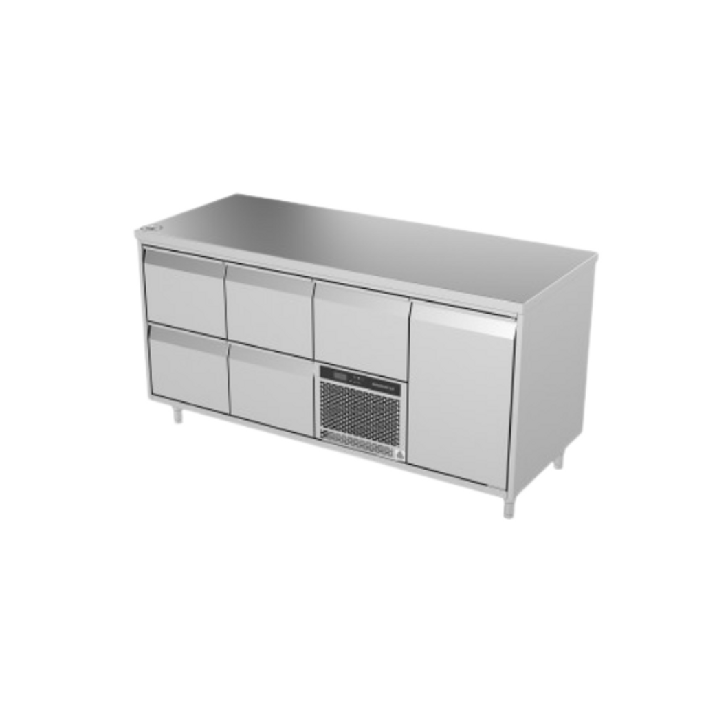 En annan styrka är monoblock-systemet – ett komplett kylaggregat som kan bytas på någon minut. För verksamheter innebär det minimalt stillestånd och enkel service. För tekniker innebär det en genomtänkt konstruktion utan kompromisser. Flexibiliteten är också en del av helheten. Olika längder, lådor, dörrar, speciallösningar och tillval gör att bänken anpassas efter köket – inte tvärtom. Oavsett om du driver gatukök, storkök, café eller restaurang med öppet kök är målet detsamma: Rätt temperatur, logiskt arbetsflöde och en bänk som står pall när den behövs som mest.