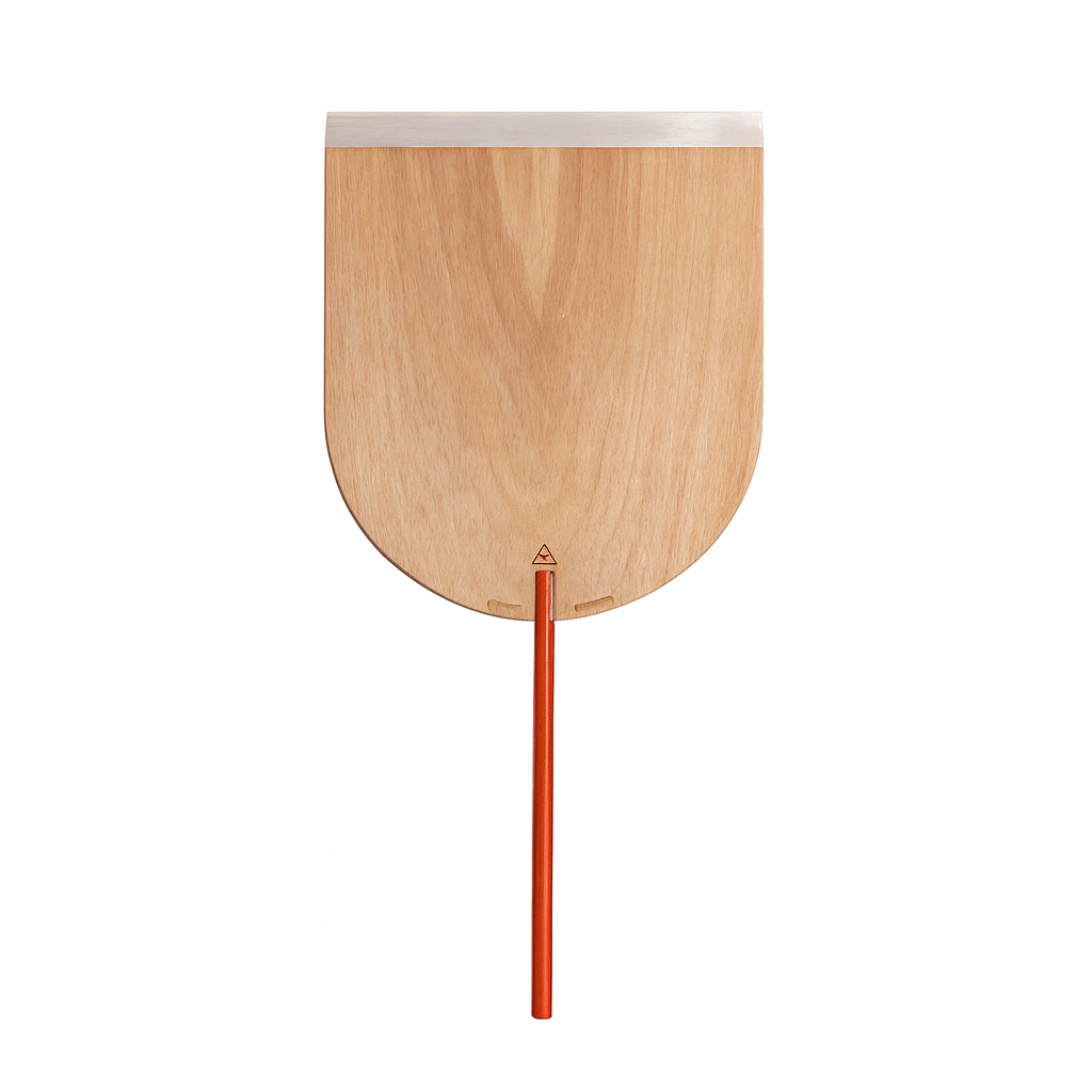 En handtillverkad pizzaspade i slitstarkt trä, utformad för daglig användning i restauranger och pizzerior. Den släta ytan och den 50 mm breda aluminiumkanten gör att pizzor glider smidigt vid både in- och uttag i ugnen. Det generöst långa handtaget ger god räckvidd och säker manövrering även vid höga temperaturer. Handtaget är lackat för enklare rengöring och ökad hållbarhet i professionell drift.