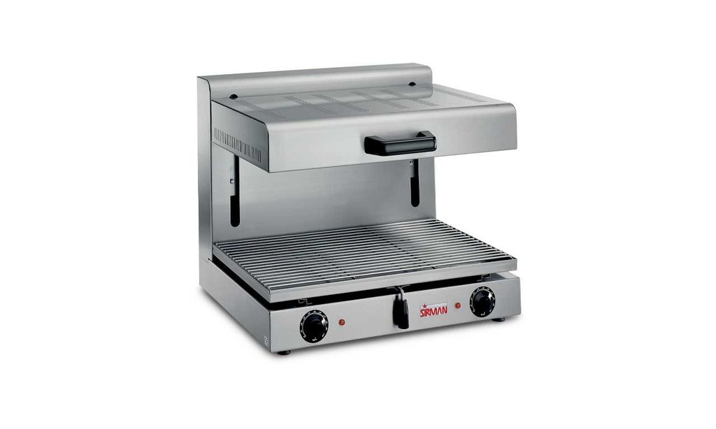 Elektrisk salamandergrill med justerbart övergaller. Sirman Mobile Pro 1/1G erbjuder snabb, jämn värme och är anpassad för 1/1 GN-plåtar – för effektiv grillning och mindre disk i det professionella köket.