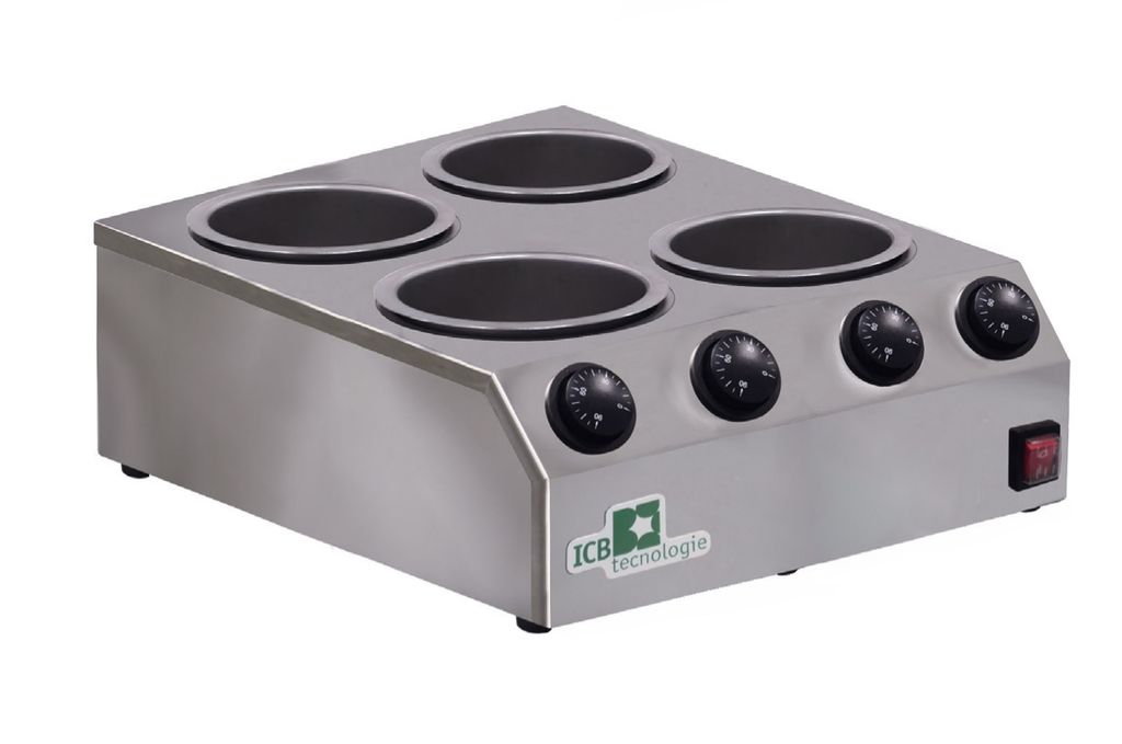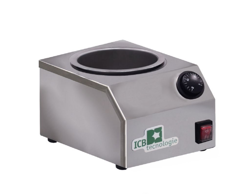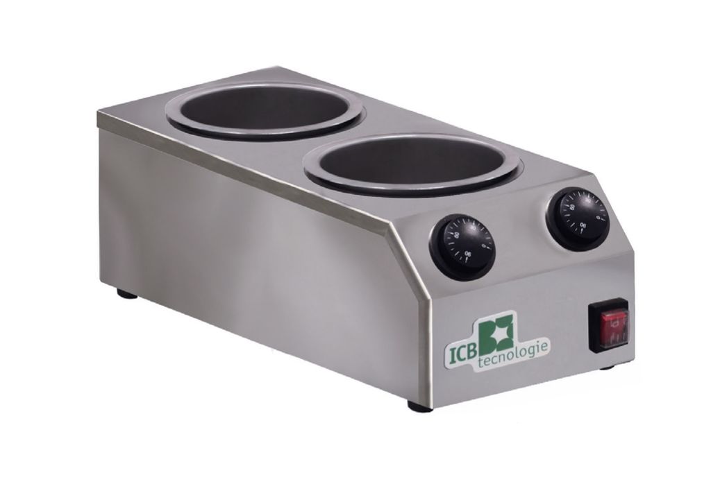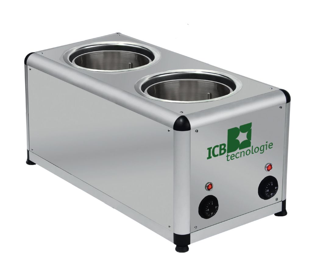 ICB Tecnologie har speciella smält-/värmemaskiner (melters) för glassbarer och gelato-ställen, som är gjorda för att smälta choklad, såser och toppingar och hålla dem vid exakt rätt temperatur för att doppa glass, dekorera kulor eller toppinga bägare. Dessa modeller har en robust konstruktion, ofta med rostfria behållare som är löstagbara och lätt att rengöra.