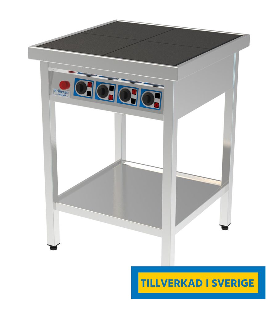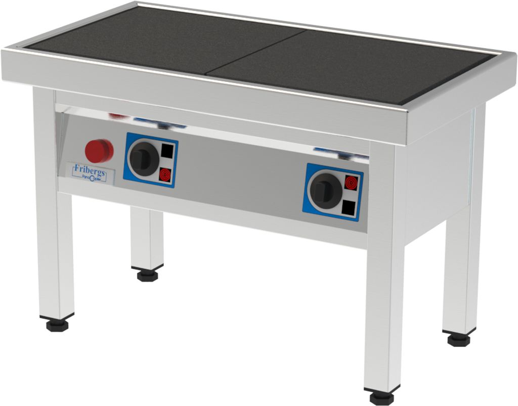 FKT används ofta i kök där man vill ha tryggheten och kvalitetskänslan från de större Fribergs-modellerna, men där ytan eller arbetsflödet talar för något mer nätt. Den värmer snabbt, håller temperaturen jämnt och är lätt att rengöra, vilket gör den lämplig för både nya och erfarna kockar. Kokspisen – fullhöjdvarianten – fungerar som en vanlig arbetsstation och är bekväm vid längre pass. Kokpallen – den låga modellen – är ett bra val för långkok, såser och större kärl som inte behöver stå i huvudproduktionen. Det är en enkel och ekonomisk lösning för extra kapacitet, och plattornas massa gör att de tål hård drift, även utan kärl på.