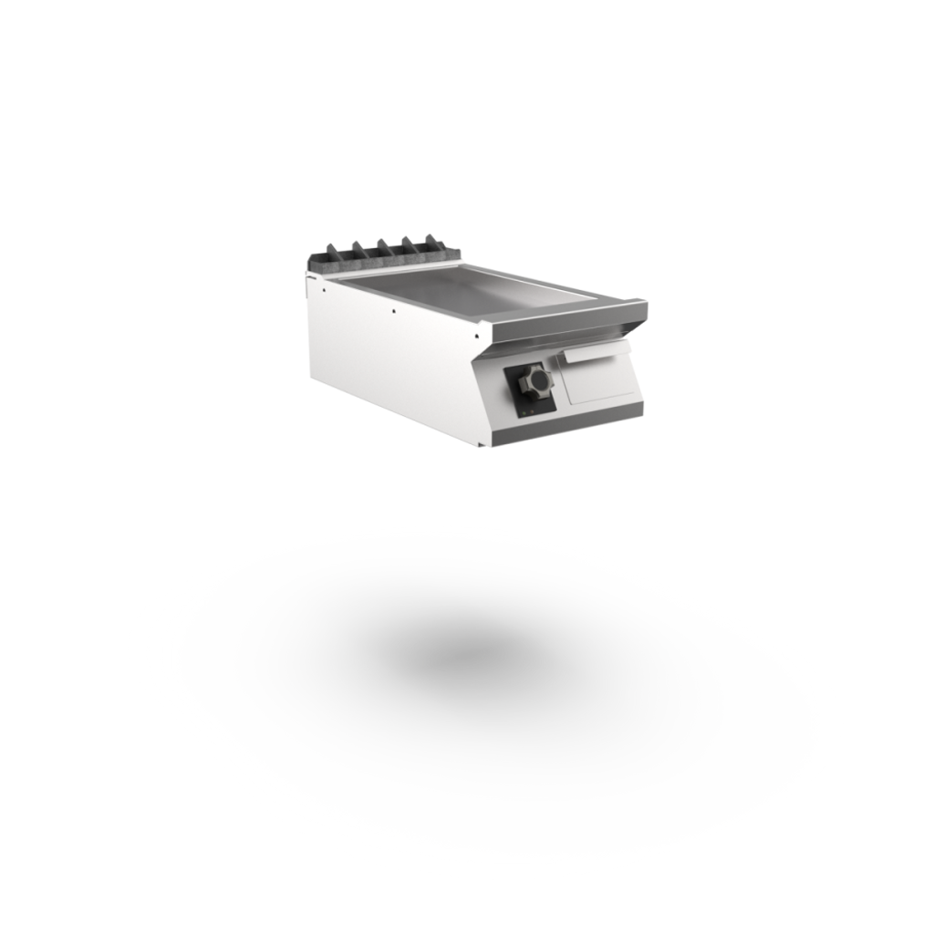 Mareno stekhäll FT74EL# har 5,4 kW effekt och en slät, sluttande stekyta av mild steel som är infälld 40 mm i toppskivan. Enheten har ett stort uppsamlingskärl för fett.