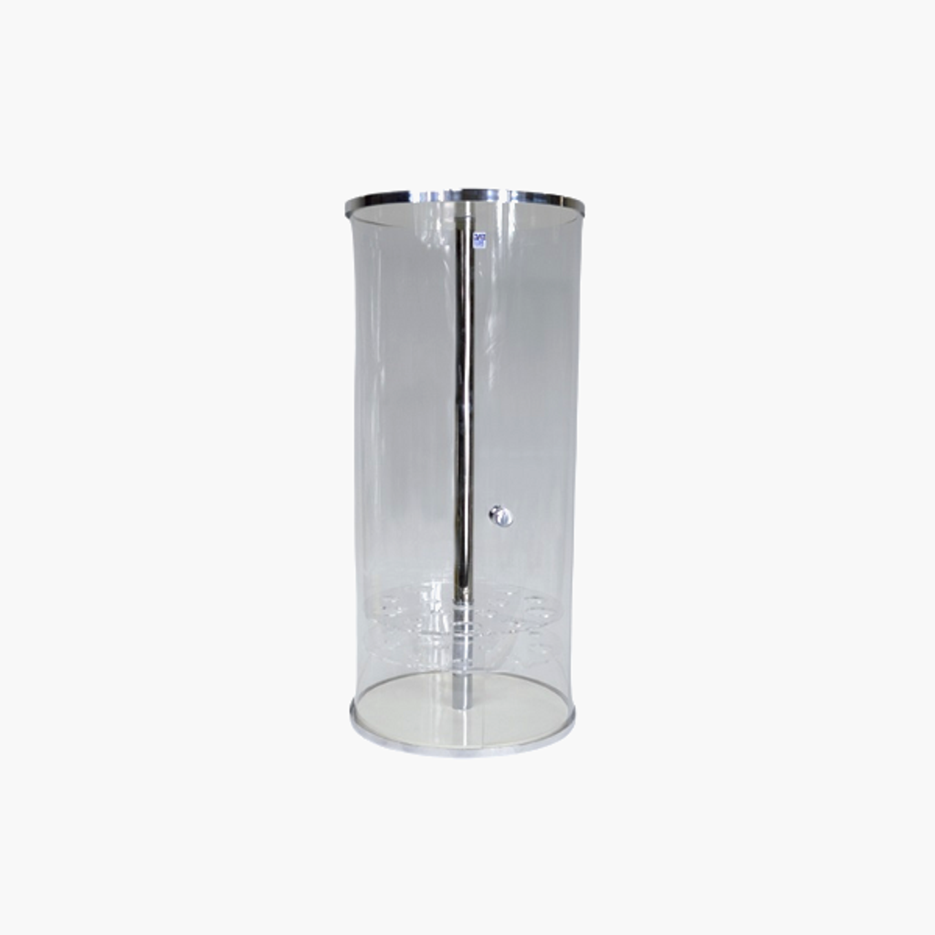 En hygiensk cylinderformad behållare för att hålla glasstrutar på ett både snyggt och hållbart sätt.