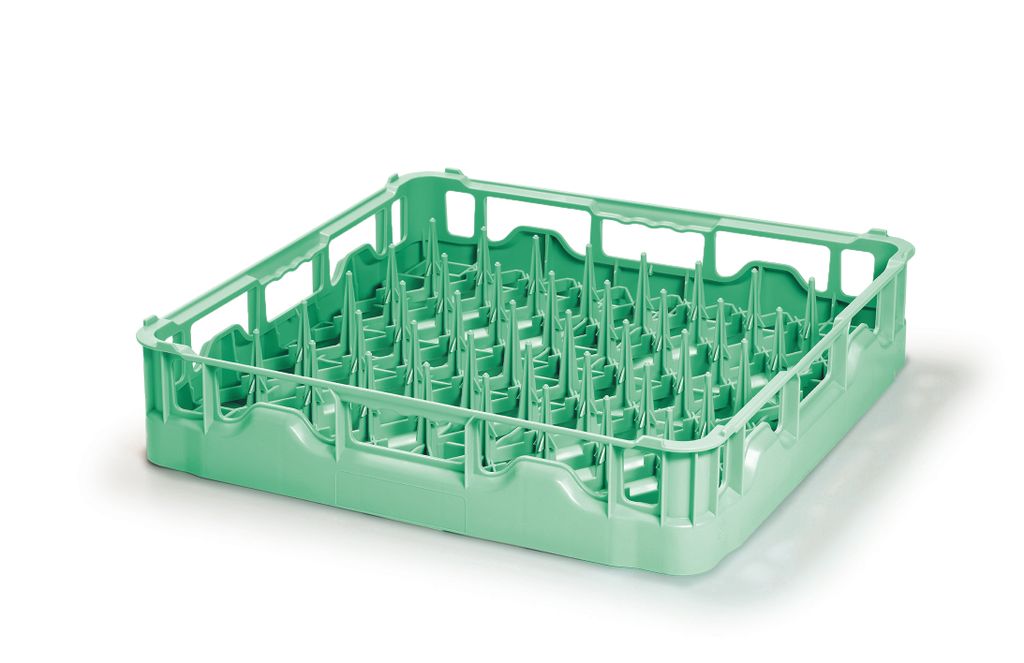 Tallrikskorg för 18 flata eller 12 djupa tallrikar – hållbar, hygienisk och anpassad för effektiv diskning i professionella kök. Perfekt passform för att hålla tallrikarna stabilt under hela diskcykeln.