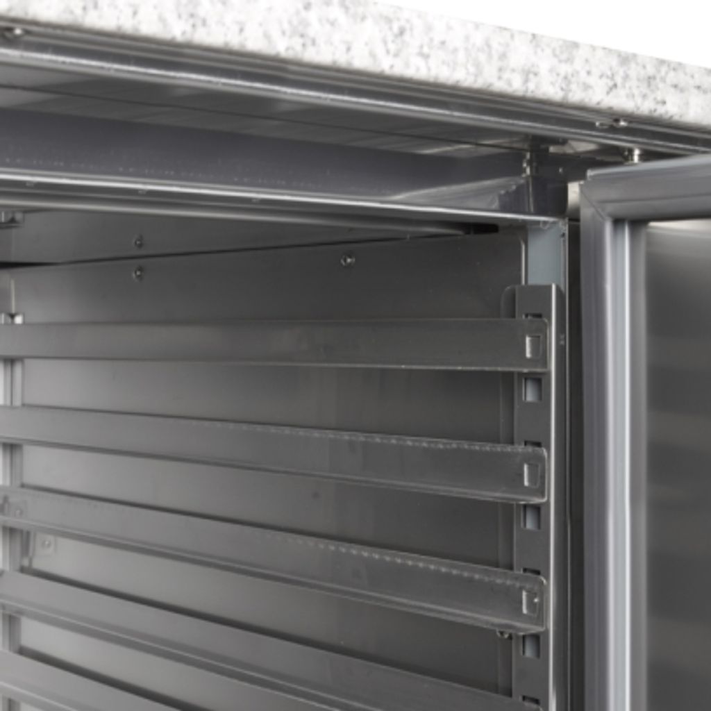 Avsedd för pizzaproduktion i restaurang, pizzeria eller café. Kylrännan ger enkel tillgång till ingredienser, medan granitskivan lämpar sig för utbakning och topping.