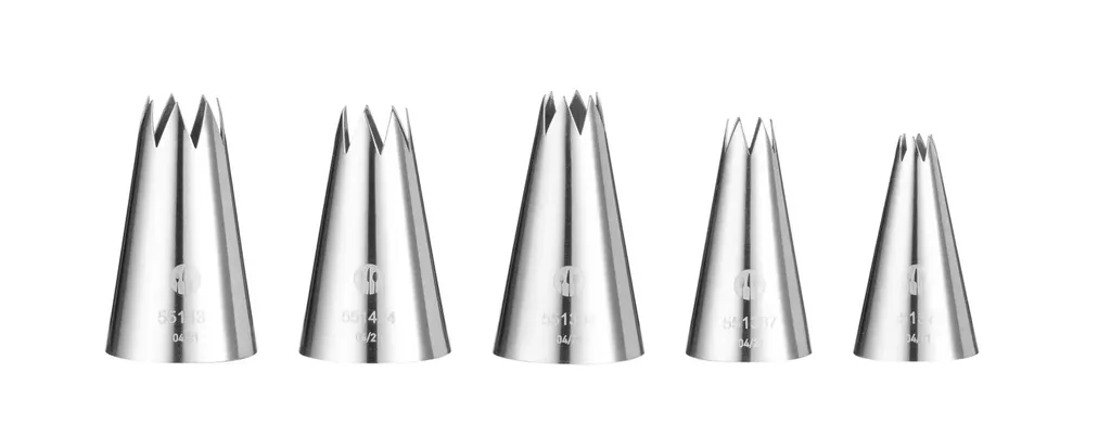 HENDI Icing Tips är robusta och pålitliga munstycken för spritsning och dekoration i både bageri och kök. De passar perfekt tillsammans med spritspåsar när du formar praliner, gör detaljerad frosting eller skapar snygga mönster på tårtor, cupcakes och bakverk. Tillverkade i slitstarkt material för jämn och precis spritsning – ett självklart val för konditorier, caféer och professionella kök.