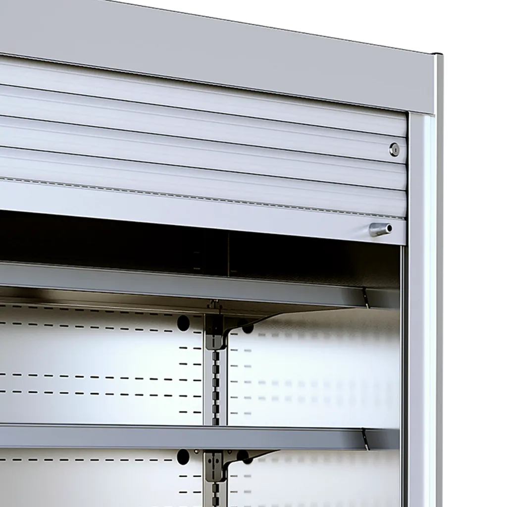 Säker och energieffektiv – Utrustad med låsbart säkerhetsjalusi som skyddar varorna utanför öppettider.