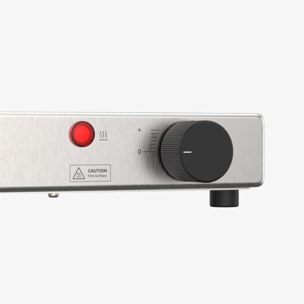 Värmehällen är byggd för daglig drift i restaurang, café eller storkök, med en platseffektiv design och dold sladdingång som gör den lättplacerad även på trånga ytor. Den löstagbara sladden gör förvaring och rengöring enklare, medan reglerbar värme upp till 105 °C gör att du kan anpassa yttemperaturen efter typ av servering och tallriksstorlek.