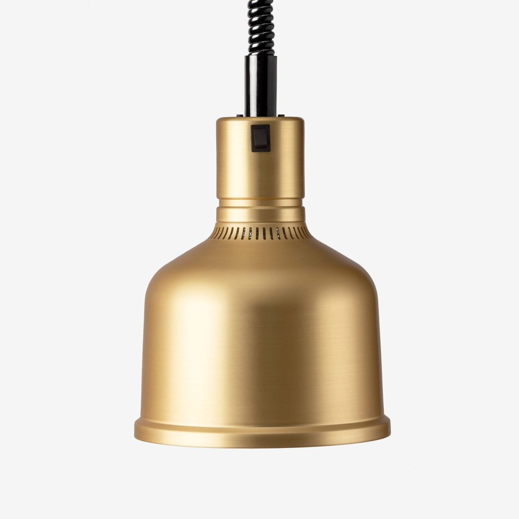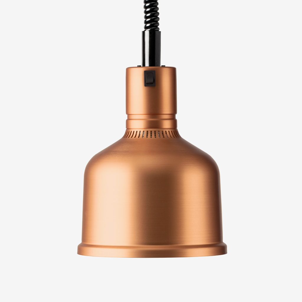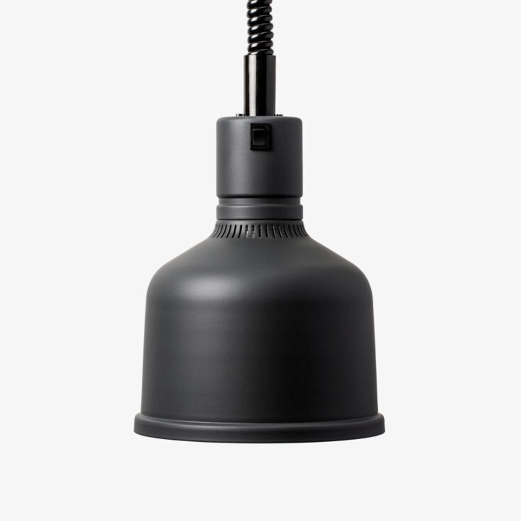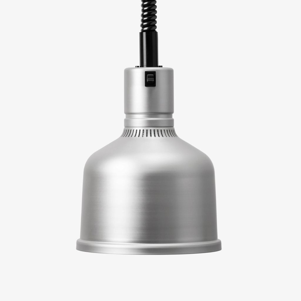 Den har infraröd glödlampa på 250 W som ger jämn och kontrollerad värme för att hålla mat varm utan att försämra kvalitet. Lampans skärm har måtten ca H 250 mm / Ø 200 mm.