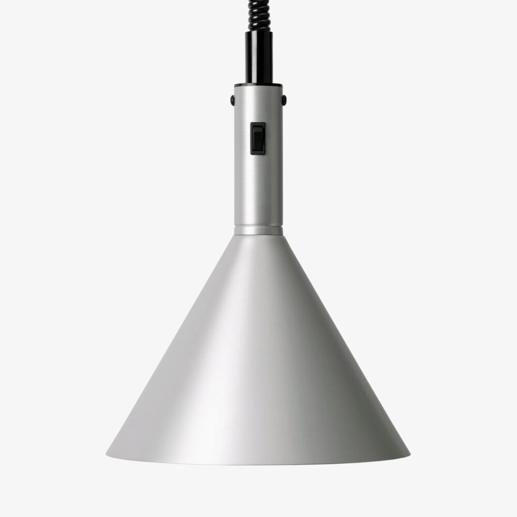 - Lampan är tillverkad i anodiserad aluminium — robust material som tål daglig användning i restaurang- eller buffémiljöer.