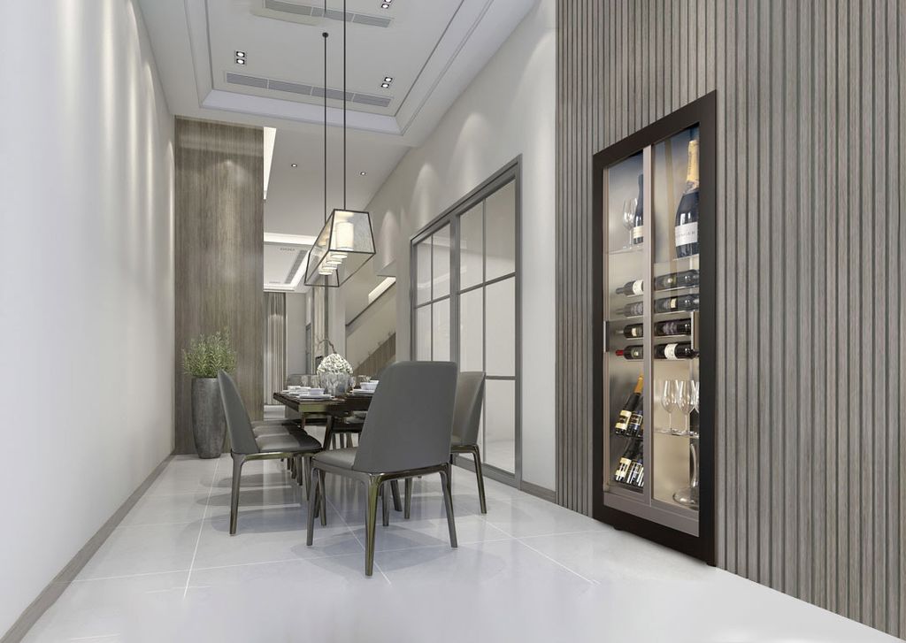 - Placeras mitt i rummet som en vinvägg och designmöbel.