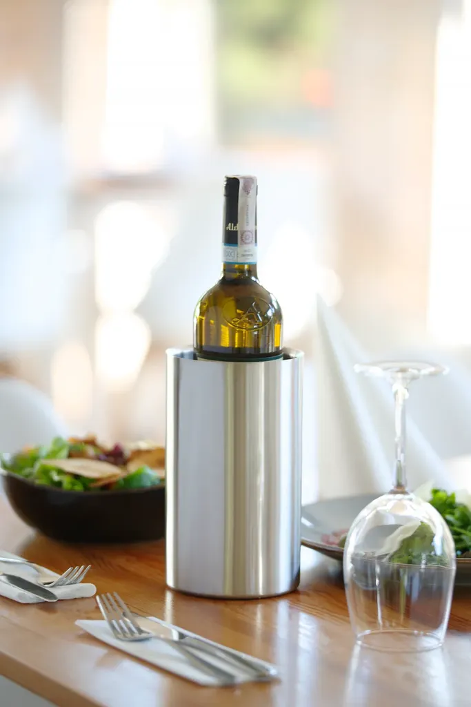 Hendi vinkylare i rostfritt stål är ett elegant och funktionellt tillbehör för restaurang, bar, eller event. Denna vinkylarer håller din vinflaska kyld under servering utan behov av is, samtidigt som den ger ett stilrent och professionellt intryck på bordet.