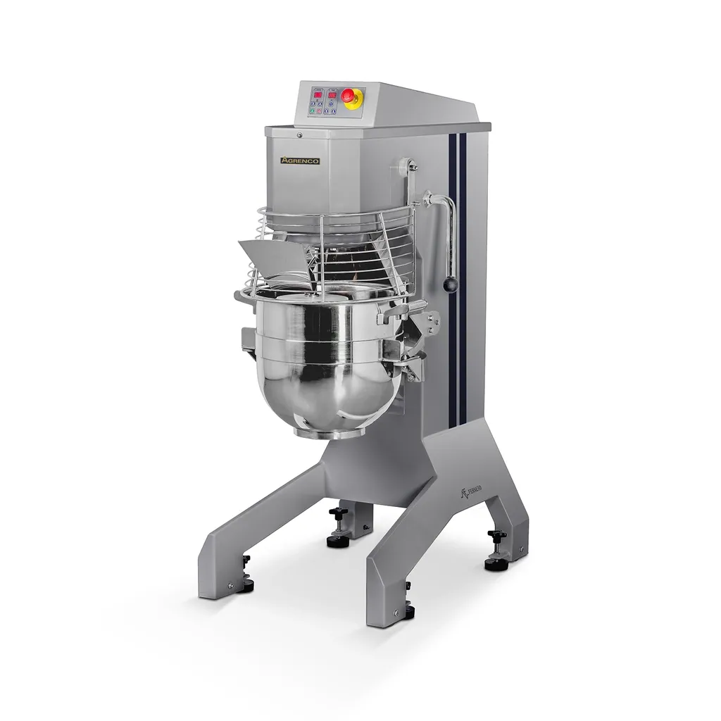AN40 är en visp- och blandnings-maskin med en kittelvolym på 40 liter. För enklare hantering kan denna maskin utrustas med elektrisk kittelhiss och kittelvagn. För att anpassa blandaren efter individuella behov finns möjlighet att komplettera med mindre kittelstorlek, b-sats och ytterligare tillval. Som standard är AN40 utrustad med tre rostfria verktyg: visp, krok samt spade. Se nedan vilka tillbehör som finns för modellen. Lågstartsfunktion, variabel hastighet, påfyllningsränna och timer är standard. Benstativen är utrustade med hjul vilket gör maskinen lätt att flytta vid t.ex. städning. När maskinen används låses den enkelt fast med stabila gummifötter på golvet. AN 40 är utrustad med hjul så att det är enkelt att förflytta vid exempel rengöring, för att sedan enkelt låsas med hjälp av sina gummifötter.